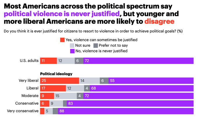 My point to G was simple: whatever you think of Kirk's politics, we are all in a lot of trouble if violence becomes a valid reaction to people with whom we disagree. And, according to the information I receive from the algorithm, it is precisely this attitude that is taking hold in the US, especially among young people.