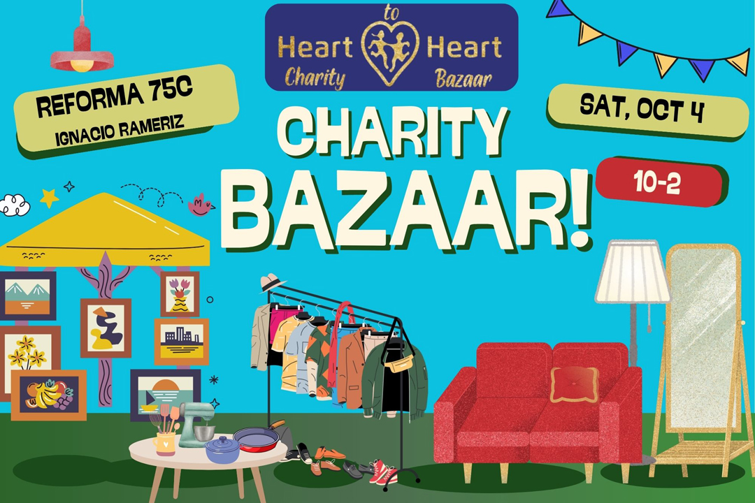 Mark your calendar! Saturday, April 5, from 10 am to 2 pm is the date for the Heart to Heart Charity Bazaar benefiting Patronato Pro Niños. We have an amazing assortment of clothing for the whole family, shoes, jewelry, linens, home goods, sporting goods, small appliances, lighting, furniture, artwork, and much, much more.