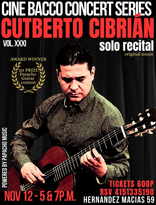 Cine Bacco Concert Series Vol. XXXI presenta con orgullo al virtuoso guitarrista clásico y compositor Cutberto Cibrián.