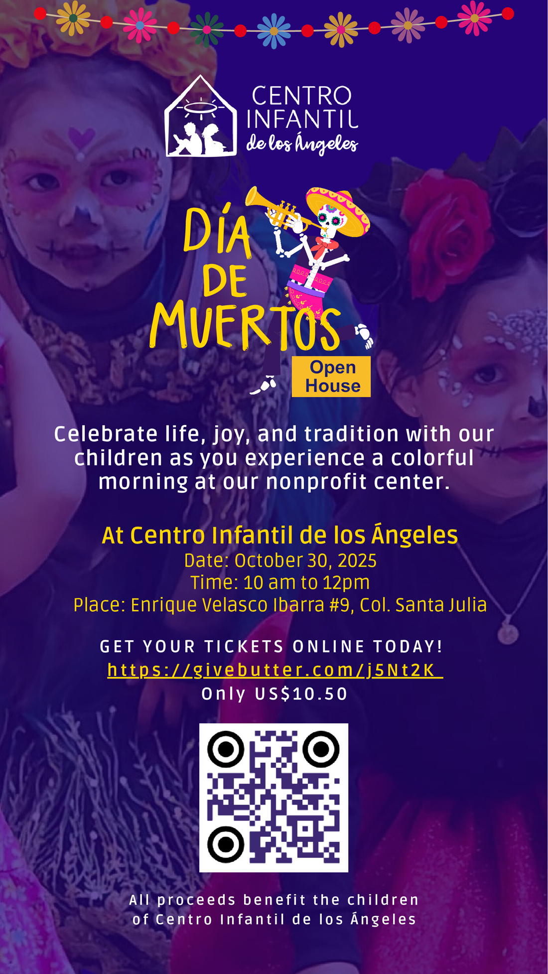 Español abajo Celebrate life, joy, and tradition with our children as you experience a colorful morning at our nonprofit center. All proceeds benefit the children of Centro Infantil de los Ángeles. *** Día de Muertos — Centro Infantil de los ÁngelesJueves, 30 de octubre, 10am–12pm