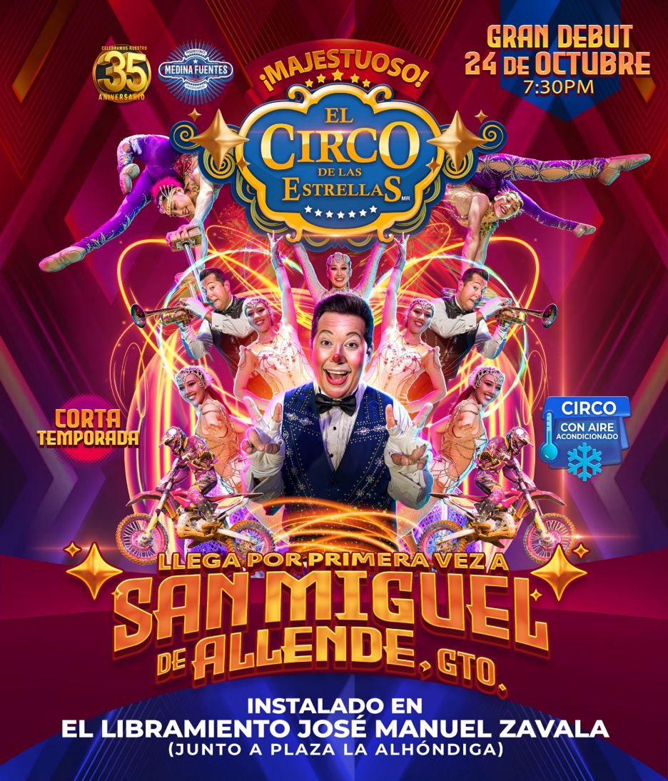 ¡El rey de los circos de América llega por primera vez a San Miguel de Allende! Disfruta de un espectáculo majestuoso con acróbatas, comediantes y artistas internacionales, bajo una carpa con aire acondicionado.