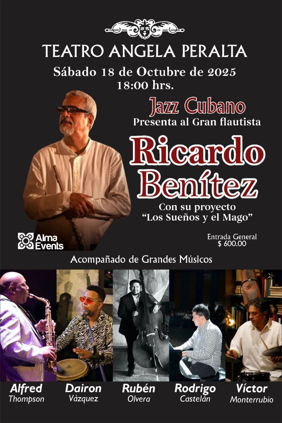 Jazz Cubano presenta al gran flautista Ricardo Benítez con su proyecto "Los Sueños y el Mago," acompañado de grandes músicos: Alfred Thompson, Dairon Vázquez, Rubén Olvera, Rodrigo Castelán y Víctor Monterrubio.
