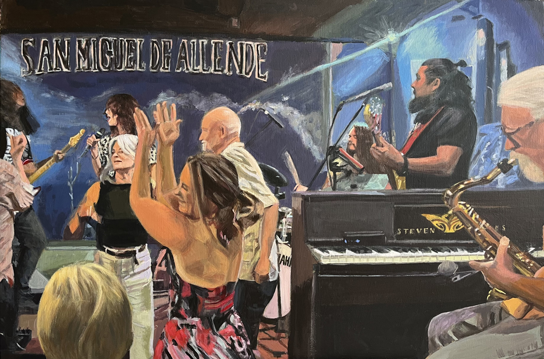 Estos son los momentos de movimiento, música y belleza que me gusta capturar en mis obras de arte. Y, afortunadamente, no han faltado voluntarios de danza ni vistas desde que llegué aquí. Es un sentimiento especial destacar a amigos y extraños locales en esta comunidad y capturar esos momentos íntimos, no con una fotografía, sino de una manera pictórica que puede cambiar cada vez que la examinas... como la vida misma.