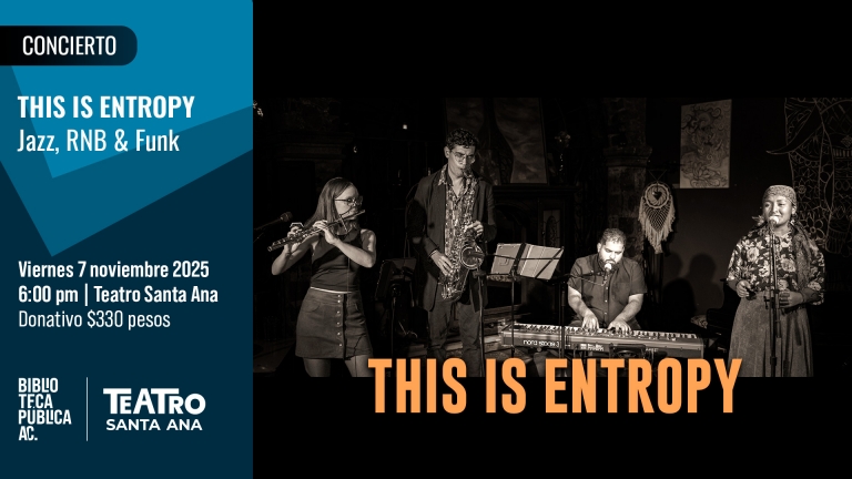 Conoce a Entropy y disfruta de sus canciones completamente originales. Esta agrupación retoma elementos del R&B, jazz y blues para transmitirnos su pasión por la música y su genialidad como músicos. Tu entrada es un para La Biblioteca. Disfruta de la música mientras apoyas los programas culturales y comunitarios de San Miguel de Allende.****** ***