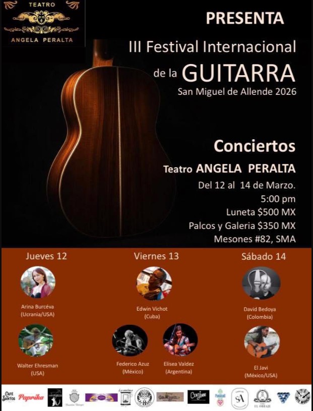Una serie de tres días de conciertos de guitarra con artistas internacionales de Ucrania/USA, USA, Cuba, México, Argentina, Colombia y México/USA.