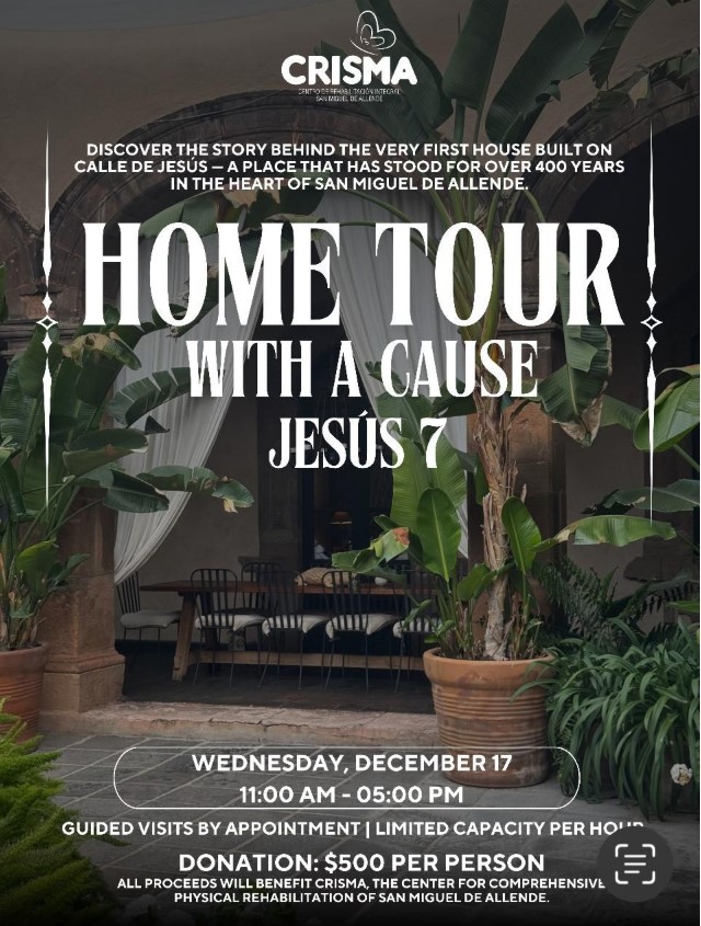 Join us for a unique experience with purpose: the Home Tour Jesús 7. Step inside the first home ever built on Calle de Jesús, a space that has stood for over 400 years in the heart of San Miguel de Allende.