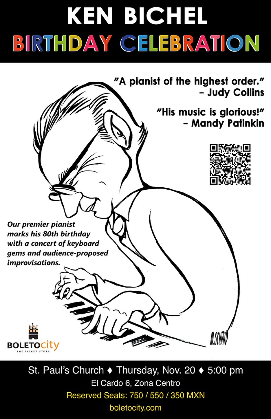 Asientos reservados: $750 / $550 / $350 https://boletocity.com/tc-events/ken-bichel-birthday-celebration-concert/