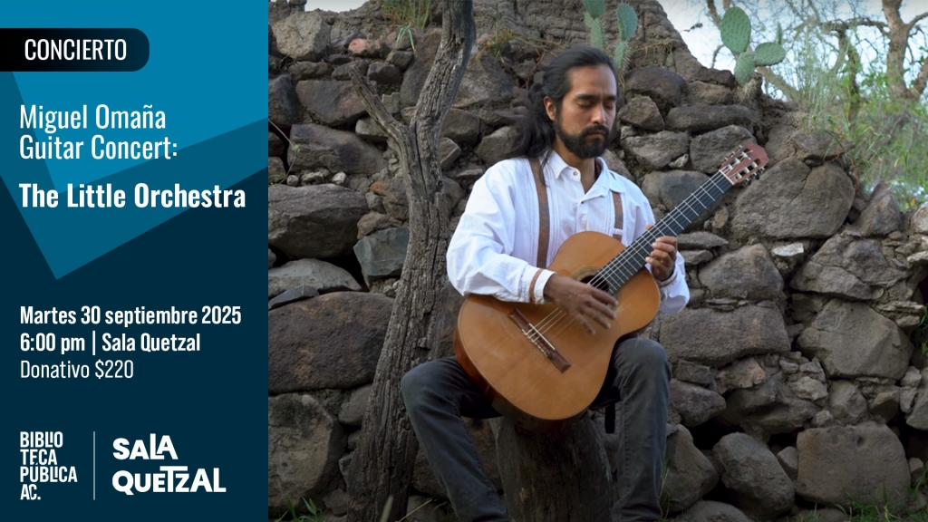 Concierto de guitarra: La pequeña orquesta – Miguel Omaña Martes, 30 de septiembre, 6pm Sala Quetzal, La Biblioteca 220