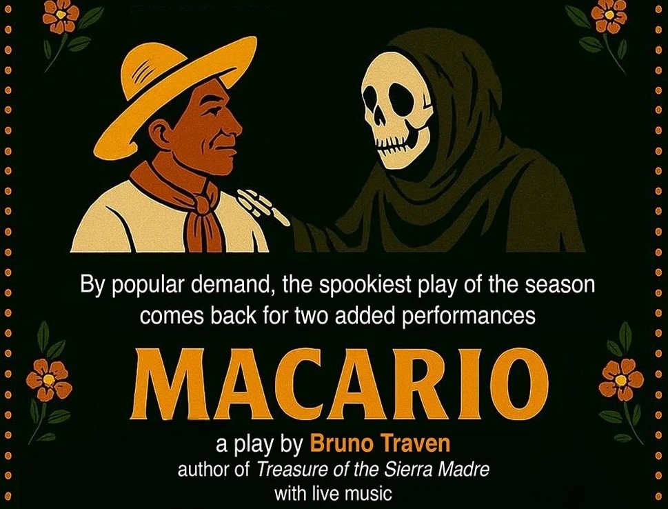 Macario fue el éxito de la temporada de Halloween / Día de Muertos cuando se presentó a finales de octubre en Artlalli, en el Centro, y debido a la gran demanda habrá dos funciones de reposición en JC3/CHESMA. La obra se presentará en inglés por algunos de los mejores actores mexicanos de San Miguel, en formato de lectura dramatizada. ¡No es una lectura común y corriente, ya que incluye música en vivo! El actor/director Alan Jordan describe esta producción de Macario como “imperdible”, y el director Pedro Allende añade: “Extraordinaria. Una ovación de pie para este magnífico elenco.”