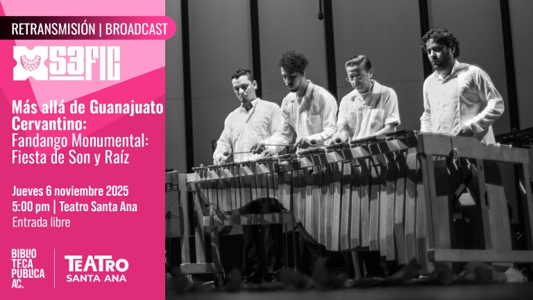 Español abajo Experience the Cervantino International Festival from the Teatro Santa Ana in La Biblioteca. Enjoy the broadcast of the opening ceremony of the 53 FIC “Fandango Monumental: Fiesta de Son y Raíz.” Duration: 180 minutes Veracruz arrives at FIC 2025 with the brilliance of its sea, the cadence of its songs, and the strength of its roots. Children and young people from Amatlán, Zozocolco, Los Tuxtlas, and Cosoleacaque come together at this festival to share their music and rhythms, joined by the Andrés Huesca Harp Ensemble and the Xalapa Percussion Ensemble. The celebration features a grand parade showcasing the state’s vibrant cultural expressions — from son jarocho, the Xochitlalli dance, quetzales, huahuas, and Papantla flyers, to the Dances of the Negritos and Moros y Cristianos, Totonac wind bands, Afro-Mestizo and carnival traditions, the Veracruz and Almolonga carnivals, and the spirited music of the Huasteca region. In addition, renowned groups such as Caña Dulce Caña Brava, Mono Blanco, and Son de Madera join the inaugural festivities, each presenting a program specially created to honor Veracruz’s popular poetry and the multicultural richness of its sones and songs. The event culminates with a grand Jarocho and Huasteco fandango at the Alhóndiga de Granaditas, where all participating groups will come together in a collective celebration of music, dance, and living tradition. *** Fandango Monumental: Fiesta de Son y Raíz, CervantinoJueves, 6 de noviembre, 5pm