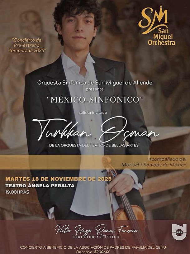 Ven y acompáñanos a nuestro concierto de pretemporada 2026, con el solista invitado Turkkan Osman de la Orquesta del Teatro de Bellas Artes, acompañado del Mariachi Sonidos de México. Dirección artística de Víctor Hugo Ramos Fonseca.