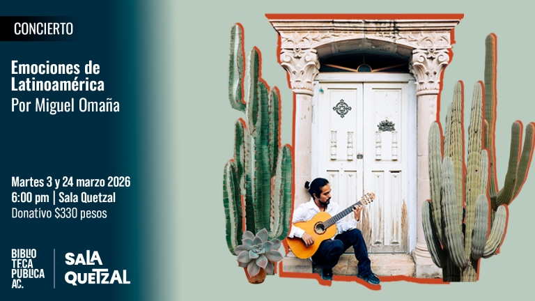 Miguel Omaña presenta Emociones de Latinoamérica. Miguel Ángel Omaña regresa a la Sala Quetzal de la Biblioteca con un concierto dedicado a la riqueza y diversidad de la guitarra latinoamericana.