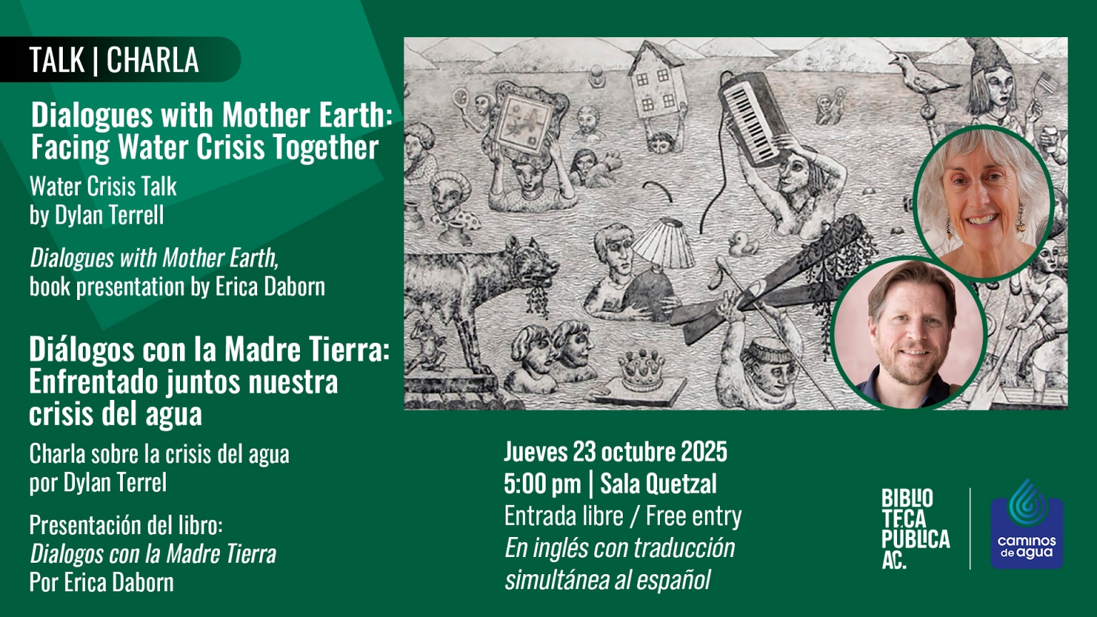 La artista británica Erica Daborn, con su proyecto “Diálogos con la Madre Tierra: Dibujar para salvar el planeta”, transforma su serie de 13 enormes murales de carbón, algunos de más de 4.5 metros de largo, en un recurso educativo accesible creado en colaboración con Caminos de Agua, la organización líder en sustentabilidad del agua en San Miguel de Allende.