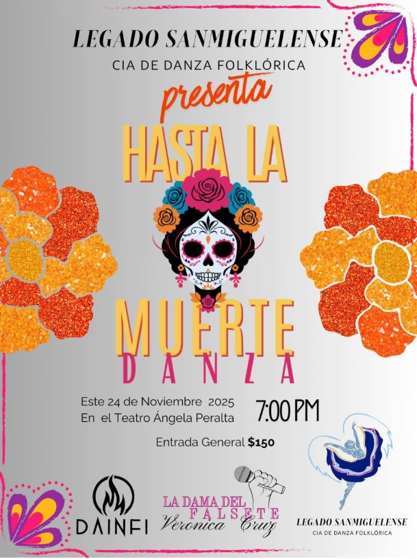 La Compañía de Danza Folklórica Legado Sanmiguelense presenta Hasta la Muerte, una colorida y conmovedora celebración de la vida, la muerte y la tradición mexicana. Disfruta los ritmos, vestuarios y la pasión del folclor mexicano en este espectáculo que rinde homenaje al Día de Muertos a través de la danza.