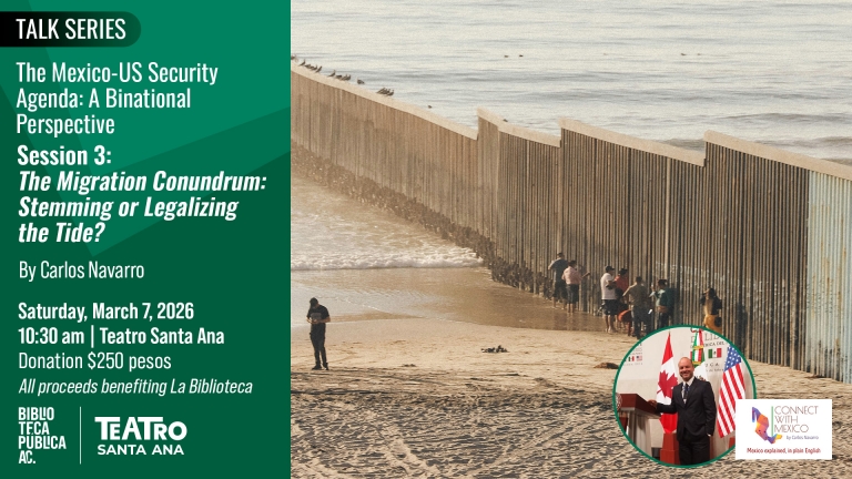 MX-US Security- Session 3, Migration Saturday, March 7, 10:30am Teatro Santa Ana, Biblioteca, Relox 50a $250 ($600 all 3 sessions) https://labibliotecapublica.org/taquillaeventos/