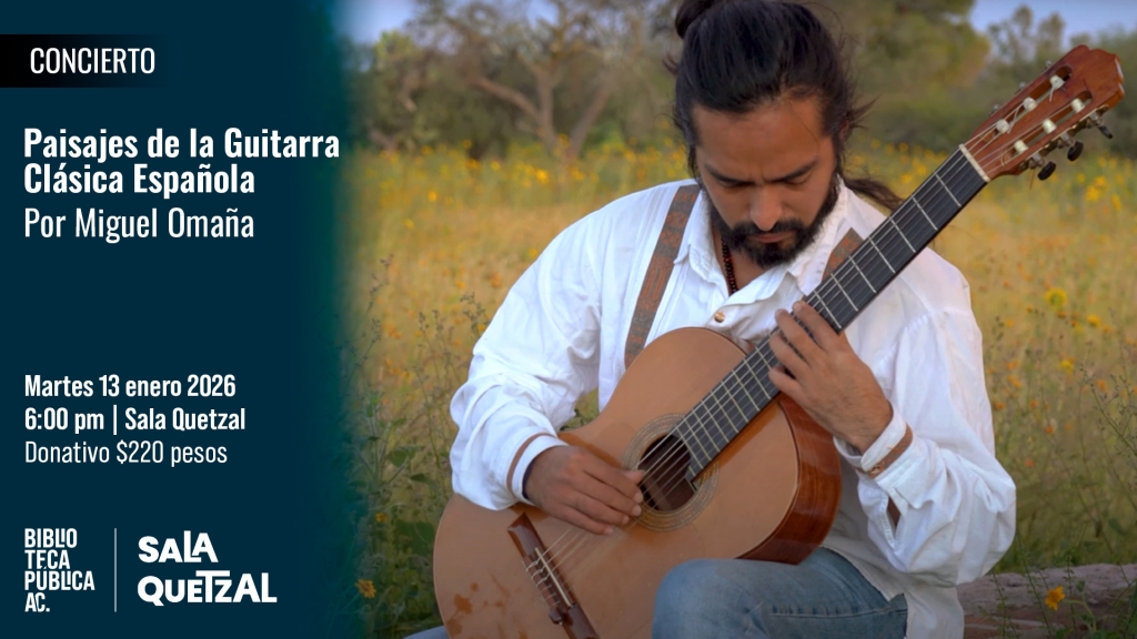 The Sala Quetzal will host classical guitarist Miguel Ángel Omaña in a concert celebrating the richness of the Spanish guitar repertoire and the expressive depth of the instrument. The Spanish guitar comes to life in a program full of energy, color, and sensitivity, featuring works by Albéniz, Tárrega, Llobet, and Sanz.