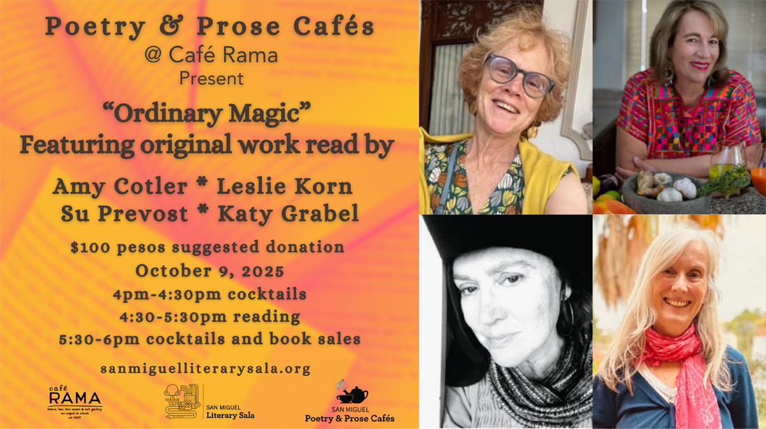 Ordinary Magic, Poetry & Prose Cafés — lecturas de obra original por Amy Cotler, Leslie Korn, Su Prevost y Katy Grabel.