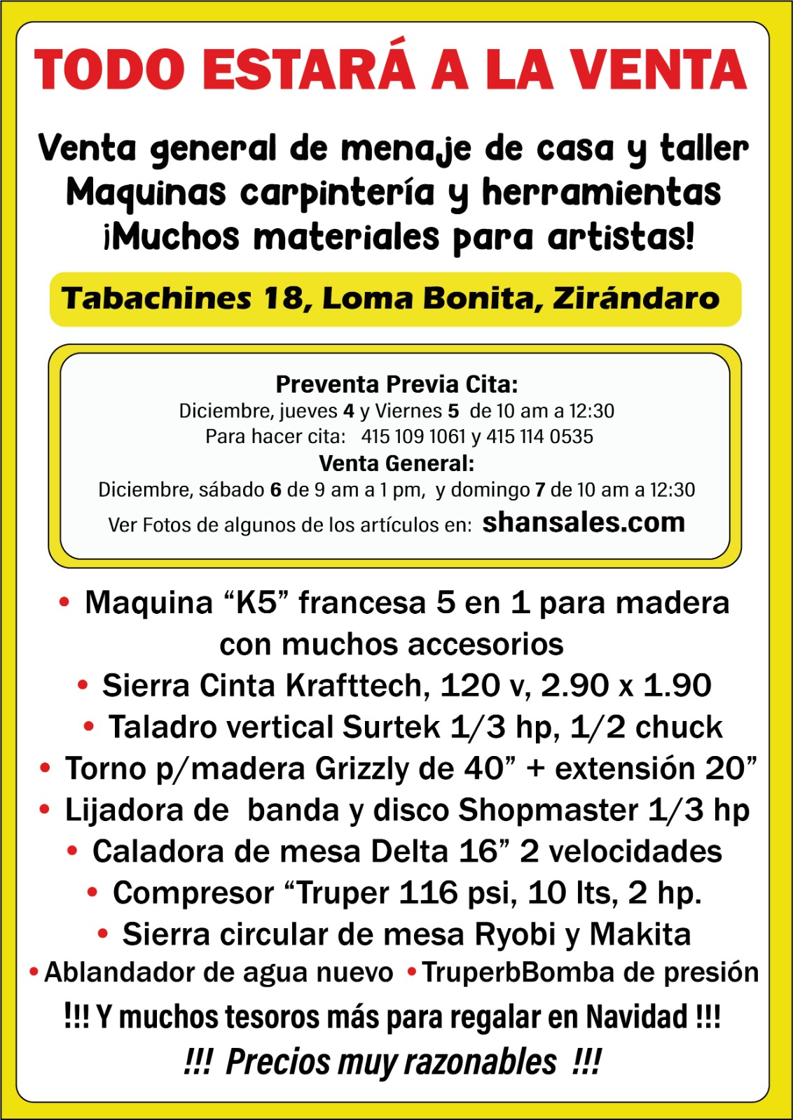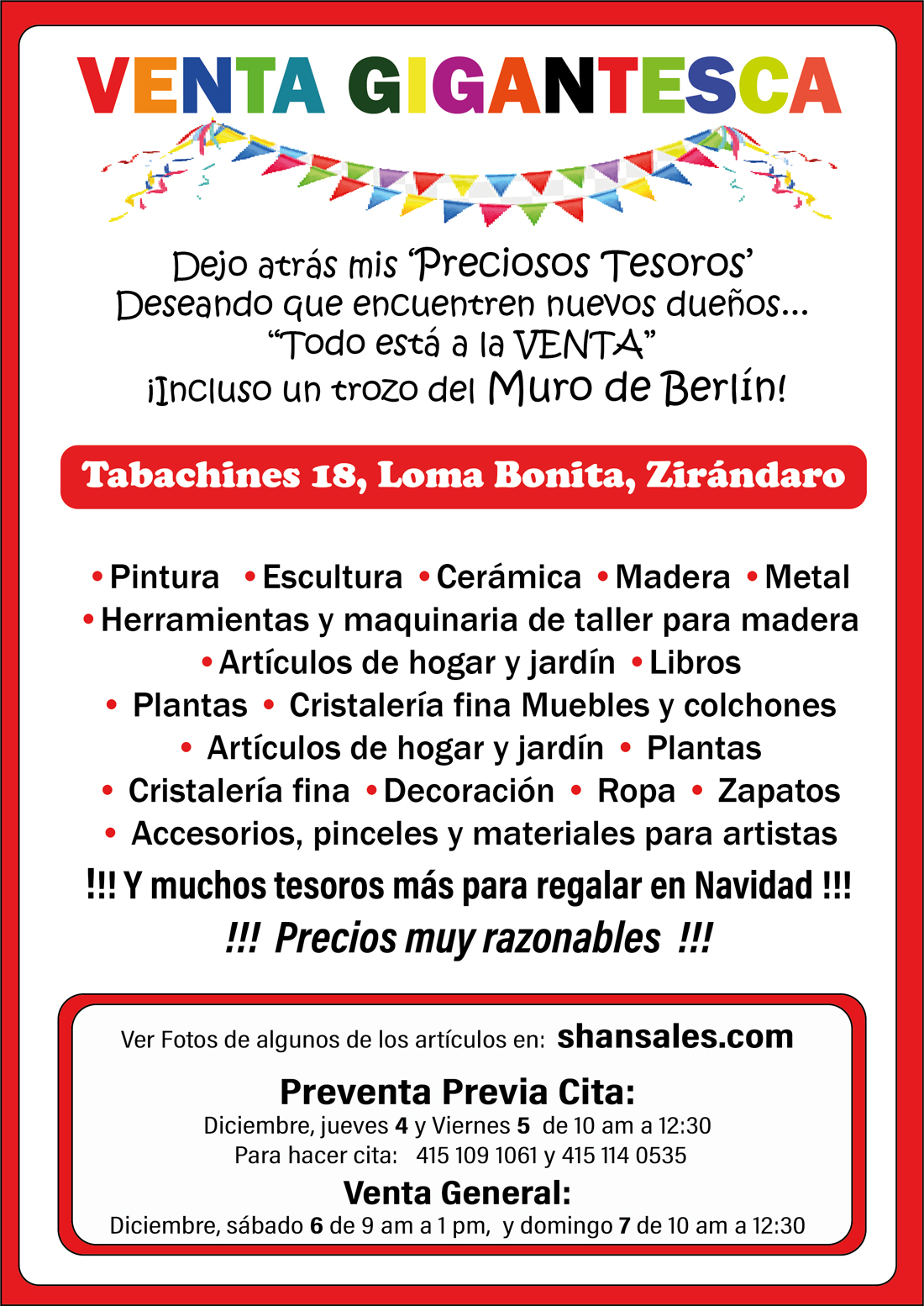 Ver fotos de algunos artículos en: https://www.shansales.com