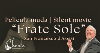 En una noche especial de cine y música, Chorale San Miguel presenta Frate Sole (“Hermano Sol”), una película muda italiana de 1918 sobre las vidas de San Francisco y Santa Clara de Asís, dirigida por Ugo Falena y Mario Corsi.