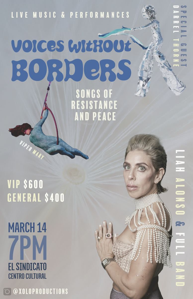 Full Band Concert at The Sindicato. A night devoted to freedom and peace in a time of borders and fracture. Songs in English, Spanish and French to celebrate one world, one race, one love. It has been a while since I have performed with a full band and I am thrilled to be producing this concert.