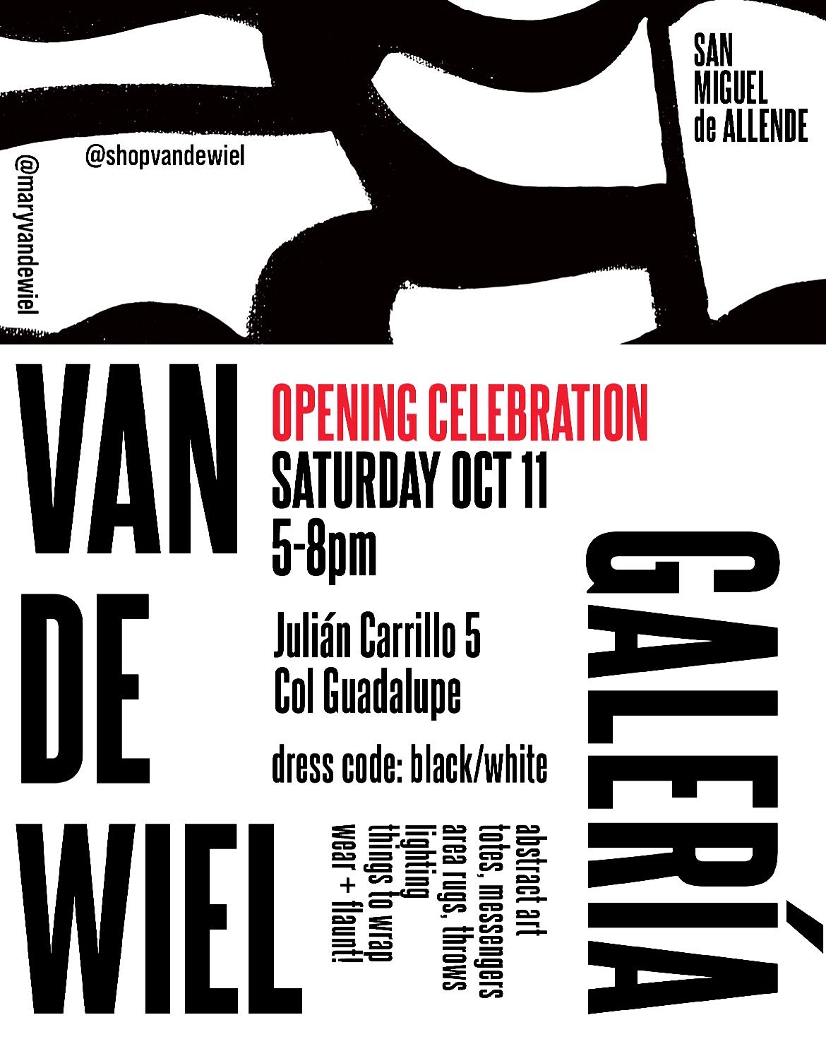Join us for the grand opening celebration of Van de Wiel Galería in San Miguel de Allende.