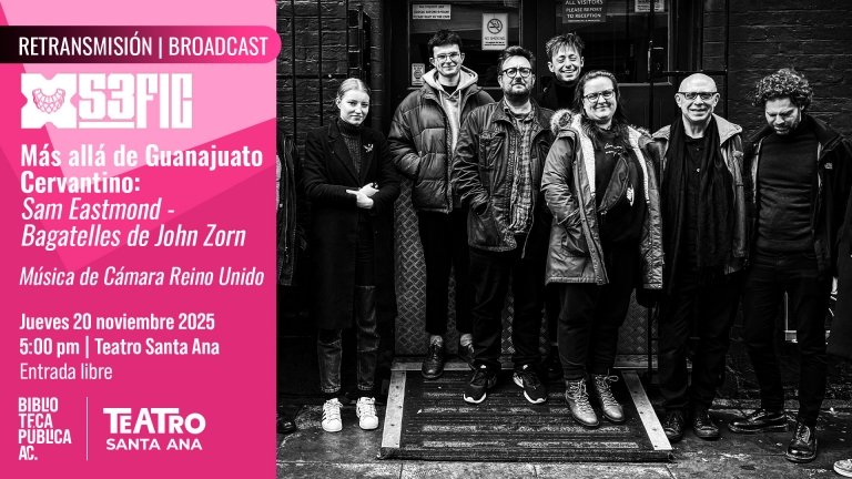 Experience the Cervantino International Festival from the Teatro Santa Ana in La Biblioteca. Enjoy the broadcast of the concert “Sam Eastmond – Bagatelles de John Zorn.”