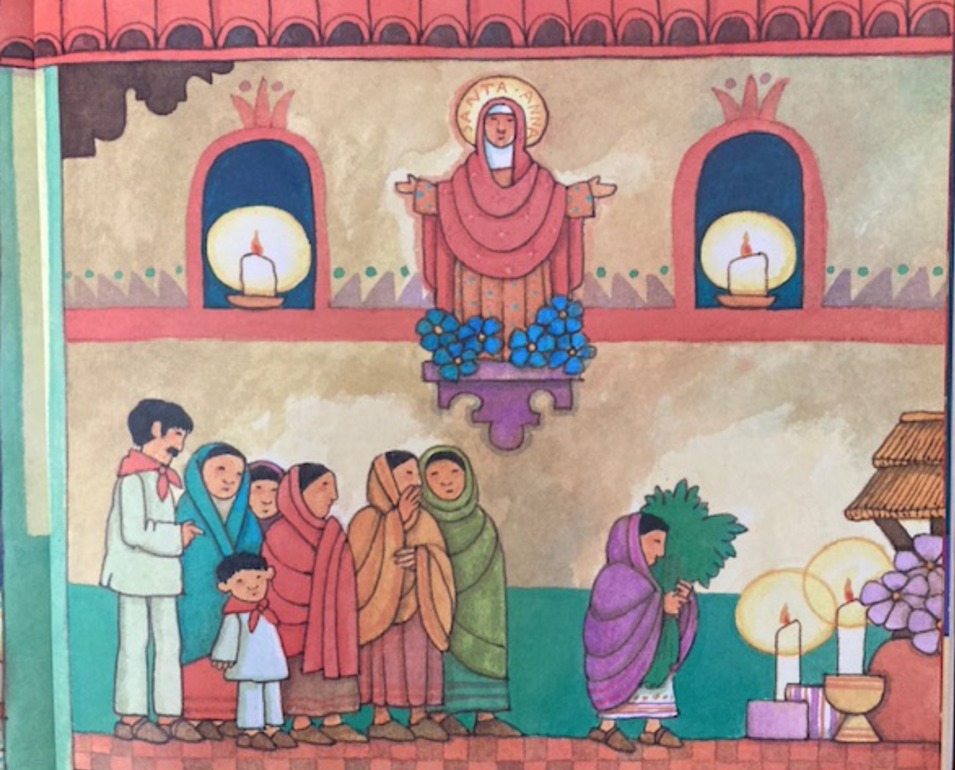No he podido encontrar ninguna evidencia de que dePaola, quien vivió la mayor parte de su vida en New Hampshire en una granja de 200 años de antigüedad, haya visitado alguna vez México. Pero logra captar a la perfección el espíritu de la piedad y la dignidad mexicanas.