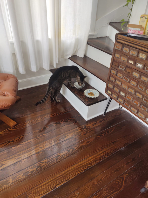 y sube a donde normalmente está su comida,