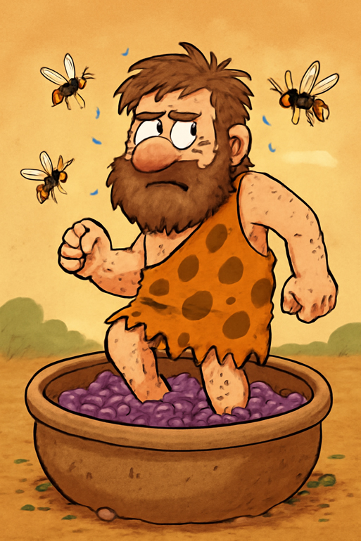 Of course, we humans were not the only lovers of grape juice. Pesky wasps have always butted in when it came to enjoying this delicious fruit liquid. For as long as we homo sapiens have been around, forever, they have been a stinging annoyance, our eternal competitors for this delicious juice.