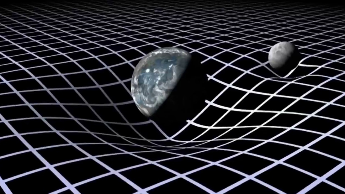Centuries later Einstein theorized that gravity results from mass bending space-time. (His theory was proven by observing, during an eclipse, the way that our Sun bends the light from distant stars.) According to Einstein things are not pulled, but "roll," as it were, into the divot, the hole that large celestial bodies create in space-time.