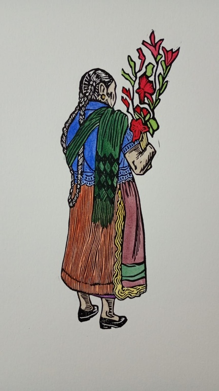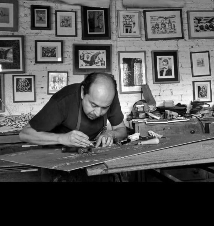 Isabel Vera Velázquez, born in Guanajuato and deeply connected to Michoacán, is an artist whose career is marked by an intense interest in popular culture, the enjoyment of artistic and artisanal processes, and a firm commitment to teaching. After completing her degree in visual arts with a specialty in drawing and printmaking at the Faculty of Fine Arts of the Universidad Michoacana, Isabel has dedicated herself to exploring and expanding her horizons in printmaking. Isabel currently leads the printmaking workshop at the Ignacio Ramírez EL Nigromante Cultural Center. Her work reflects a deep connection with her cultural roots and her commitment to teaching the arts.