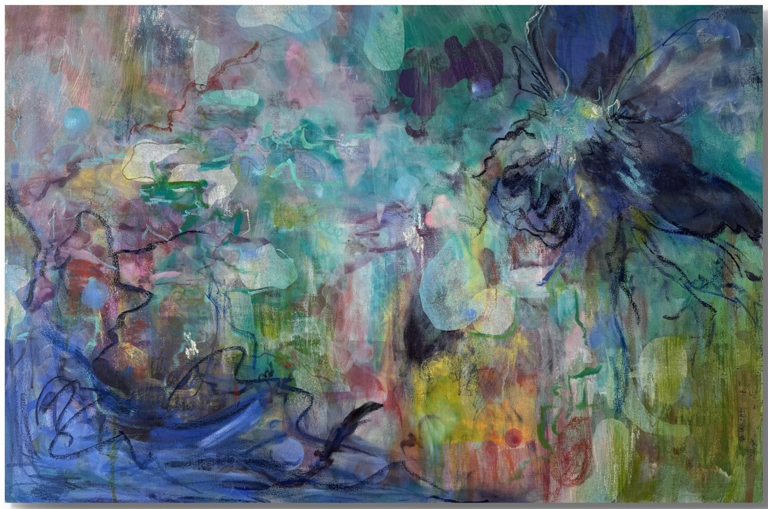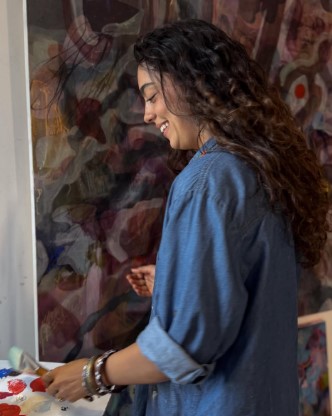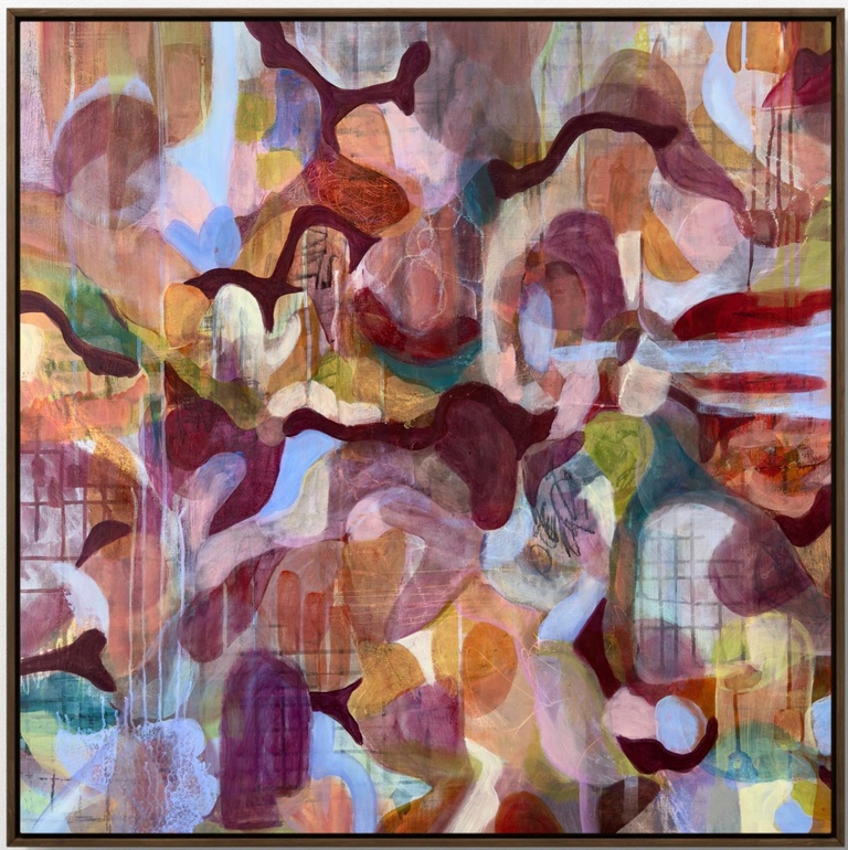 Romeria Louise is a Mexican/American visual artist known for her richly layered mixed media abstract paintings. Her work explores the emotional resonance of color, texture, and organic forms creating compositions that invite a deep sense of presence, connection, and curiosity. She blends collage, paint, and various materials to build pieces that reflect the energy of nature and the quiet beauty of everyday life.