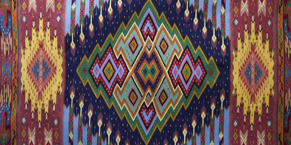 Intricate patterns painted before the arrival of the Spaniards endure in Jacobo's weaving today: eyes of the gods, the cross of Quetzalcoatl, lightning, rain... |