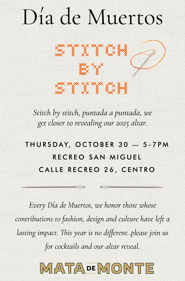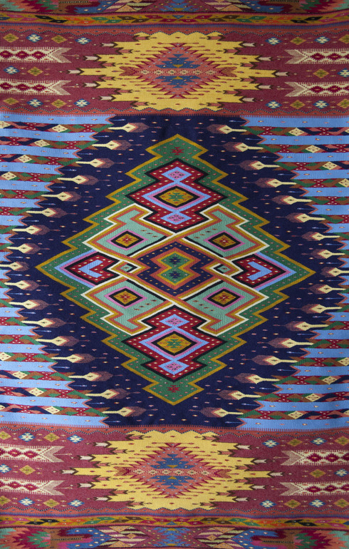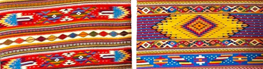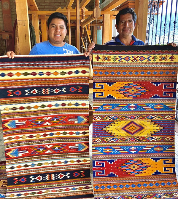 Masters Jacobo and Jacobito Mendoza Through November 8 ![]() Intent on interpreting Jacobo Mendoza's rug patterns, I see both modern and ancient designs ablaze in amazing tones of red and orange, or softly represented in greens and gold, indigo and yellow. Wavy patterns of water? "No," he tells me, "those are mountains." Navajo zig zags? "No, that is lightning." ** * Maestros Jacobo y Jacobito Mendoza Hasta 8 de noviembre ![]() Con la intención de interpretar los patrones de los tapetes de Jacobo Mendoza, veo diseños modernos y antiguos ardiendo en asombrosos tonos rojos y naranjas, o suavemente representados en verdes y dorados, índigo y amarillo. ¿Ondulaciones de agua? "No", me dice, "son montañas". ¿Zigzags navajos? "No, eso es un rayo". |