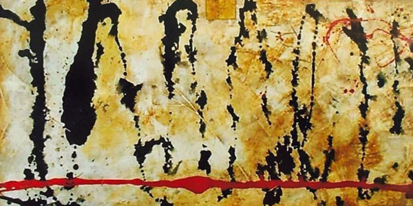 Las pinturas adquieren su impulso de ese cruce gestual en el que la escritura manual y la pintura se encuentran y cohesionan. |