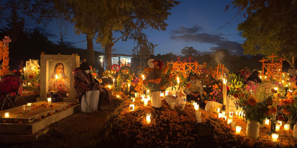 Llevan flores, comida, colocan sillas, usan abrigos pesados y se envuelven en cobijas, ya que muchos pasarán la noche allí con sus antepasados. |